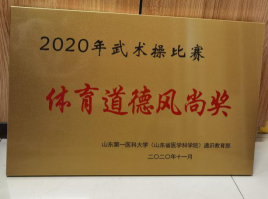 为更好地传承民族文化,弘扬民族精神,促进校(院)学生体质健康,由通识教育部主办的2020年武术操比赛在济南校区风雨操场举行。我院学生以整齐划一的动作、青春自信的招式赢得了全场最高分,荣获济南主校区第一名和体育道德风尚奖,展现了我院学生良好的精神风貌。