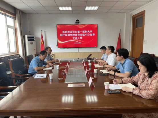 6月5日,v站体育官网院长谷景亮、书记苏宝利及医药服务管理研究所所长宋奎勐一行3人赴山东省卫生健康委医疗管理服务中心开展合作交流,医疗管理服务中心党委书记、主任聂雷及中心办公室相关负责同志参加座谈交流。