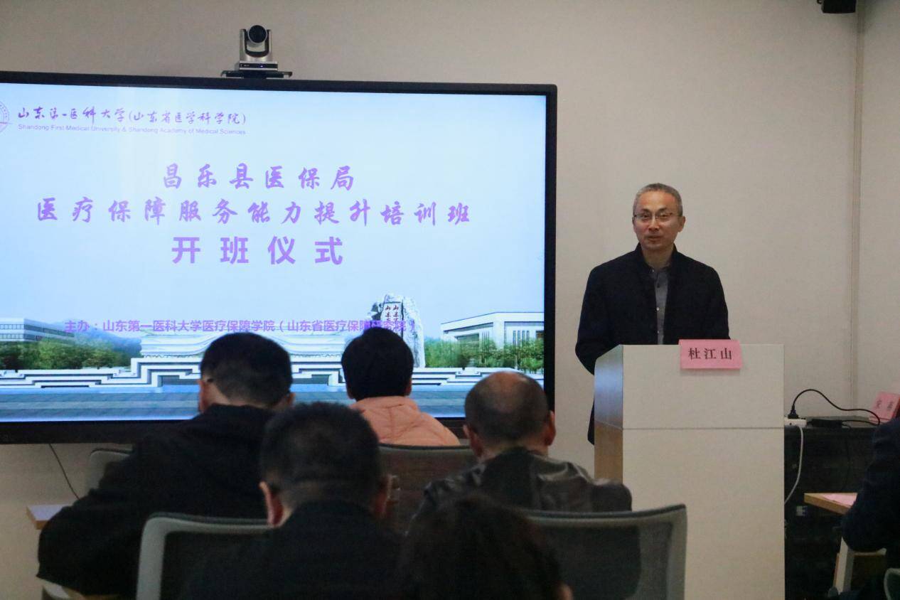 3月12-14日,由v站体育官网主办的昌乐县医疗保障服务能力提升培训班在济南校区成功举办。昌乐县医保系统、医疗机构相关骨干人员30余人参加培训。党委书记杜江山参加开班仪式并致辞。