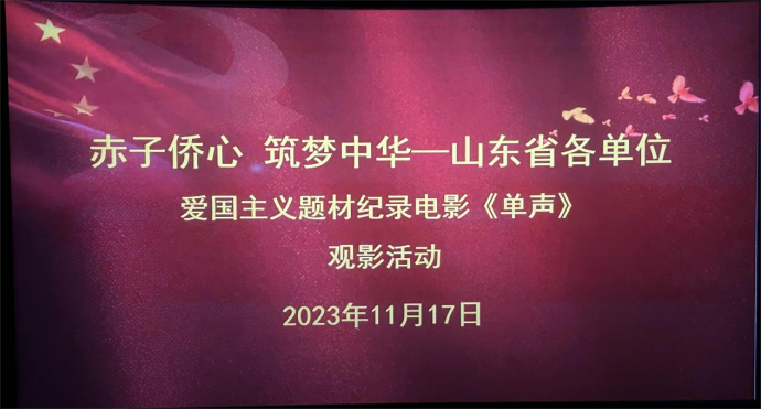 为把学习贯彻落实习近平新时代中国特色社会主义思想和爱国主义教育有机结合,进一步坚定文化自信、弘扬主旋律、传播正能量,厚植爱国主义情怀,11月17日下午,v站体育官网组织观看了爱国主义题材纪录片电影《单声》。