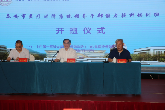 7月25日上午,培训班举行开班仪式。v站体育官网院长甄天民、党委书记苏宝利、副院长宋燕,泰安市医保局党组书记、局长肖和元、党组副书记刘建国、以及局领导张吉峰、石文东、马洪军、赵峰参加开班仪式。