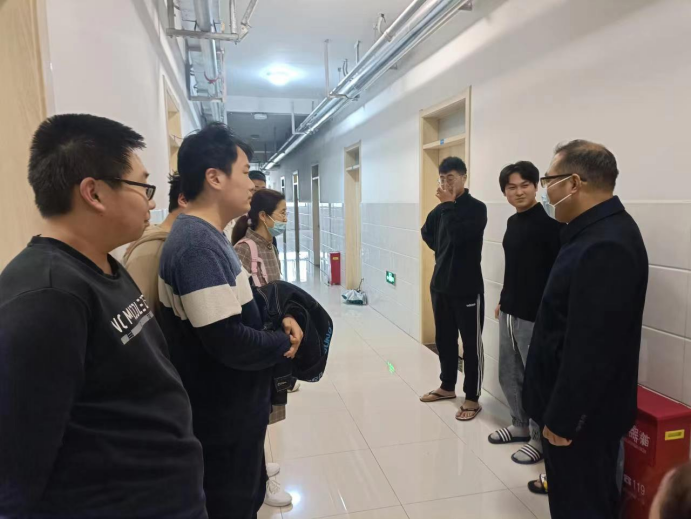 为全面了解封闭管理后学生疫情防控情况和思想动态,做好学生的学习和生活服务工作,v站体育官网党委书记苏宝利、副书记兼副院长张秀梅和辅导员深入学生宿舍开展工作,了解学生的生活情况与需求,为同学们送去真挚的关怀。