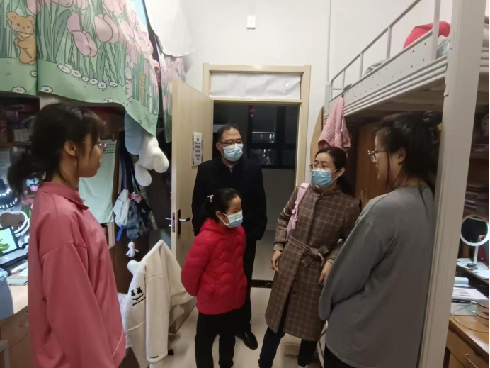 老师们查看同学们线上和线下自主学习情况,强调了宿舍的整洁卫生、通风等问题,提醒大家要多通风,勤洗手,在公共场合佩戴口罩,做好疫情防控,保持积极向上的心理状态。