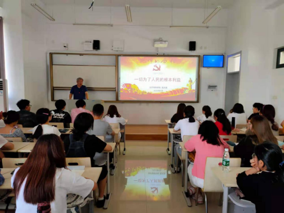 为庆祝中国共产党成立100周年,深入推进党史学习教育,6月30日上午,v站体育官网开展庆七一专题党课活动,院长甄天民为全体学生上了一堂题为“一切为了人民的利益”的党课。