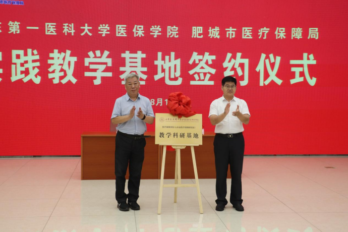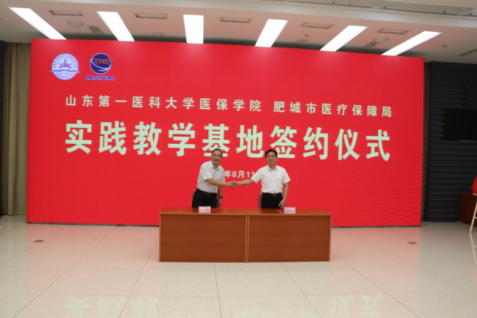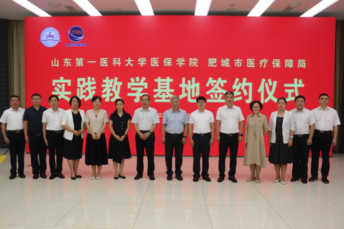 随后,苏宝利与肥城市医保局党组书记、局长朱国签订实践教学基地协议书,甄天民与泰安市医保局党组成员、副局长石文东共同为实践教学基地揭牌。
