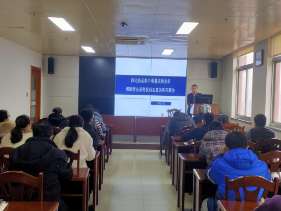 1月15日上午,省医疗保障局医药价格与招标采购处副处长刘智应邀做“深化药品集中带量采购制度 保障群众获得优质实惠的医药服务”的讲座。刘智首先介绍了医药价格和招标采购处的主要职责,随后,分别从药品集中采购的地位和意义、药品集中采购的主要政策框架、药品集中带量采购的方式方法及药品集中带量采购的主要成效四个方面做了汇报,为大家深入认识药品集中带量采购提供了丰富的信息。