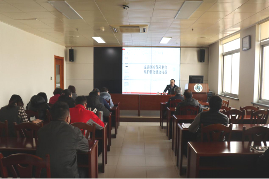 神芳民副处长首先简要介绍了省医保局的情况以及各处室的主要职能,随后作了题为“完善医疗保障制度 维护群众健康权益”的报告。神芳民首先从医疗保障的重要意义展开,详细阐述了医疗保障在健康中国建设、民生保障以及中国特色基本医疗卫生制度中发挥的作用,并结合自身工作经历,详细介绍了我省的多层次医疗保障体系,以及目前存在的问题。最后,神芳民就中共中央、国务院发布的《关于深化医疗保障制度改革的意见》又做了进一步的解读。报告会后神芳民副处长同与会人员进行了互动交流。