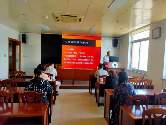 苏宝利以“为什么历史和人民选择了中国共产党”为题,从中国的历史文化特征与马克思主义中国化进程讲起,阐述了历史和人民为什么会选择中国共产党。苏宝利指出党史是最好的营养剂,引导我们从历史中汲取走向未来的智慧,全体支部成员要按照学院党委的要求积极主动学习,做好学习笔记,将党史学习内化于心,外化于行。