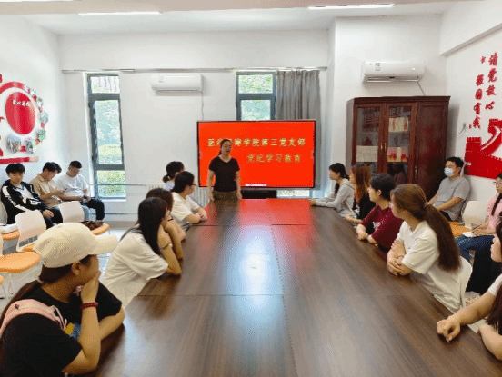 为推动党纪学习教育走深走实,确保全体学生党员能够原原本本学习新修订的《中国共产党纪律处分条例》,增强纪律意识,5月27日,v站体育官网第三党支部于“一站式”学生活动社区组织开展党纪学习教育。