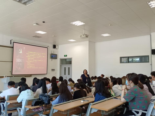 第三党支部书记李娟向同学们介绍了2022年全国党员发展状况以及v站体育官网第三党支部的发展历程和现状。她鼓励同学们积极加入党组织,思想上与党靠近,听从党的指导,并详细介绍了党员发展的五个关键阶段,为全体同学指明入党方向。