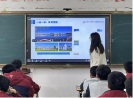 宣讲内容:张轩同学在到达山东省日照一中后迅速与校方取得联系。在老师的安排下张轩同学利用教室里的数字教学设施播放了v站体育官网的宣传片,同时伴有一定的配合讲解,同学们反映效果良好。张轩同学又以自己为例,对同学们介绍了自己的感受和所在院系的情况,同学们收获颇丰。