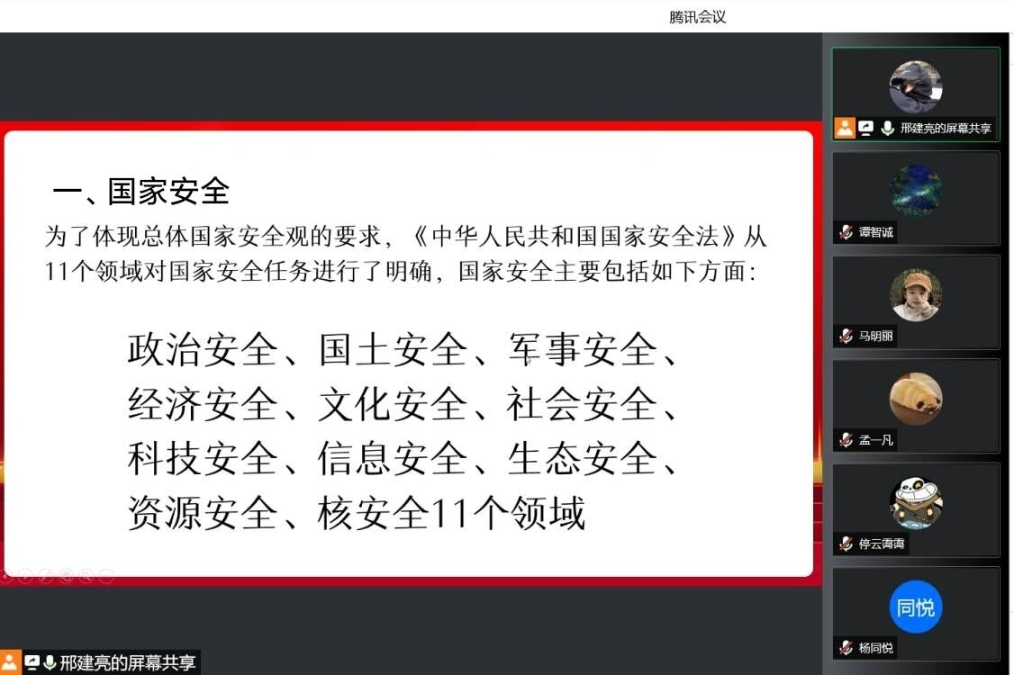 为筑牢学生国家安全意识,4月15日v站体育官网召开“全民国家安全教育日”主题班会,全体同学学习国家安全的相关知识。班会上,同学们明确了国家安全的内容,从政治安全、国土安全等多个领域理解了其内涵,并通过鲜活的事例进一步认识到了国家安全的重要性。同学们积极发表自己的看法,提升了国家安全意识,也增强了使命感和责任感。通过本次班会,树牢了同学们的总体国家安全观,感悟到新时代国家安全成就,也充分认识到维护国家安全与每个人密切相关,维护国家安全需人人参与,人人负责。