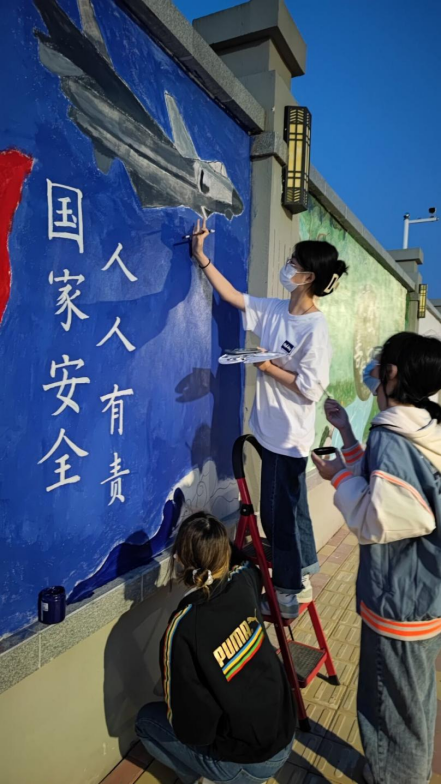 为弘扬国家安全观,丰富同学们的校园文化生活,4月27日起,v站体育官网墙绘小分队到达公教楼A北侧围墙处进行了为期9天的墙体彩绘活动。