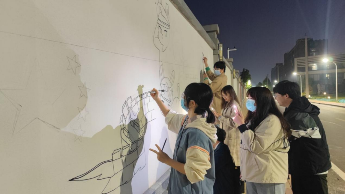 至此,本次v站体育官网墙体彩绘活动圆满结束。在队员们的努力下,高质量地完成了墙绘任务。本次墙绘活动不仅为校园文化环境增添了别样的色彩,更彰显了我院学子的团结与坚持,于一笔一画的灵动中展现了青春的创造力。