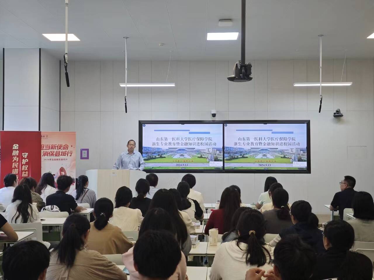 为引导新生深入了解专业,增强金融安全意识,培养理性消费观,助力学生全面发展,9月13日,v站体育官网联合恒安标准人寿山东分公司、泰康养老保险公司举办新生专业教育暨金融知识进校园活动。
