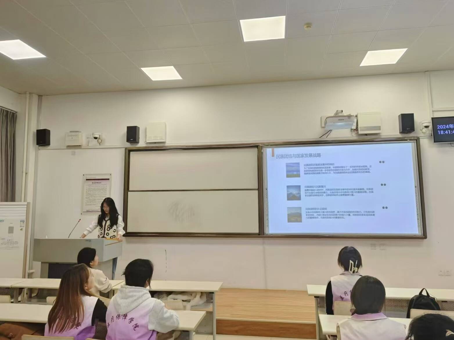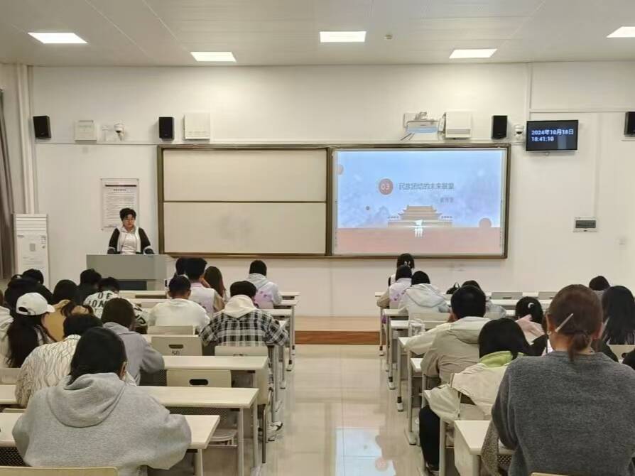 在活动现场,学院各班团支书以“铸牢中华民族共同体意识”为主题,深入介绍了民族国情、民族政策以及民族团结重要性等,通过历史故事与当代典范加深了同学们对民族团结重要性的理解,使同学们了解到了我国民族的多样性,对“五十六个民族,五十六枝花”有了更加深刻的体会。