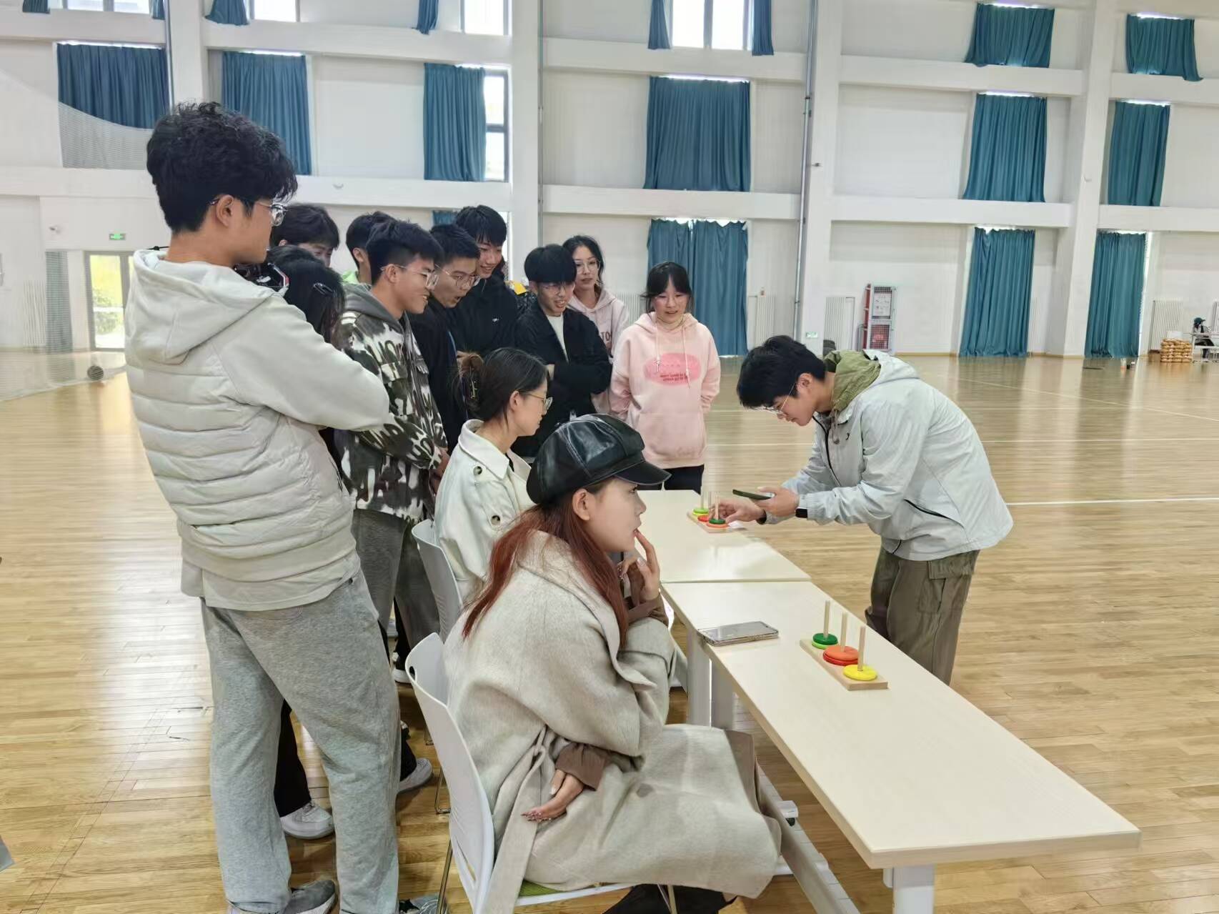 “汉诺塔接力”环节中,大家激烈角逐,展现出极高的集体荣誉感和团队协作的力量。