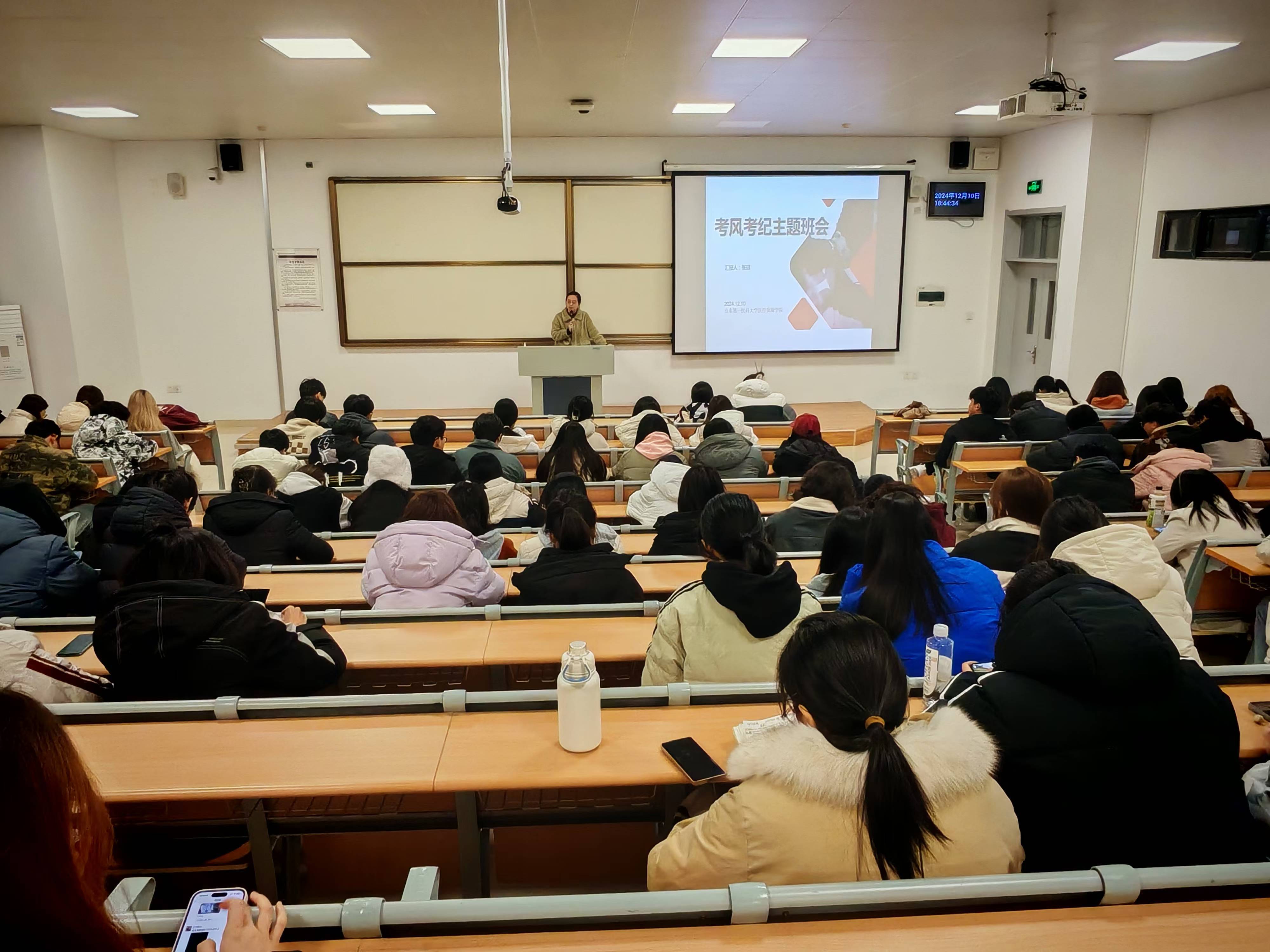 为严肃考风考纪,加强学风建设,营造文明、诚信考试的良好氛围,近日,v站体育官网组织各班级开展期末考试考风考纪诚信主题教育主题班会。