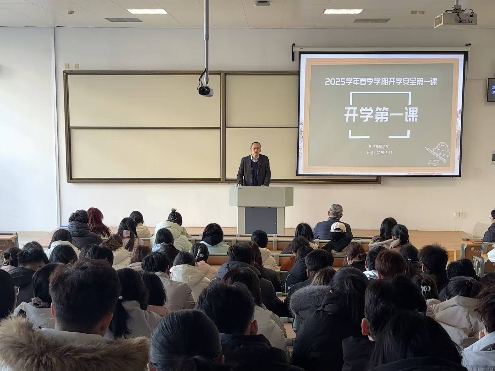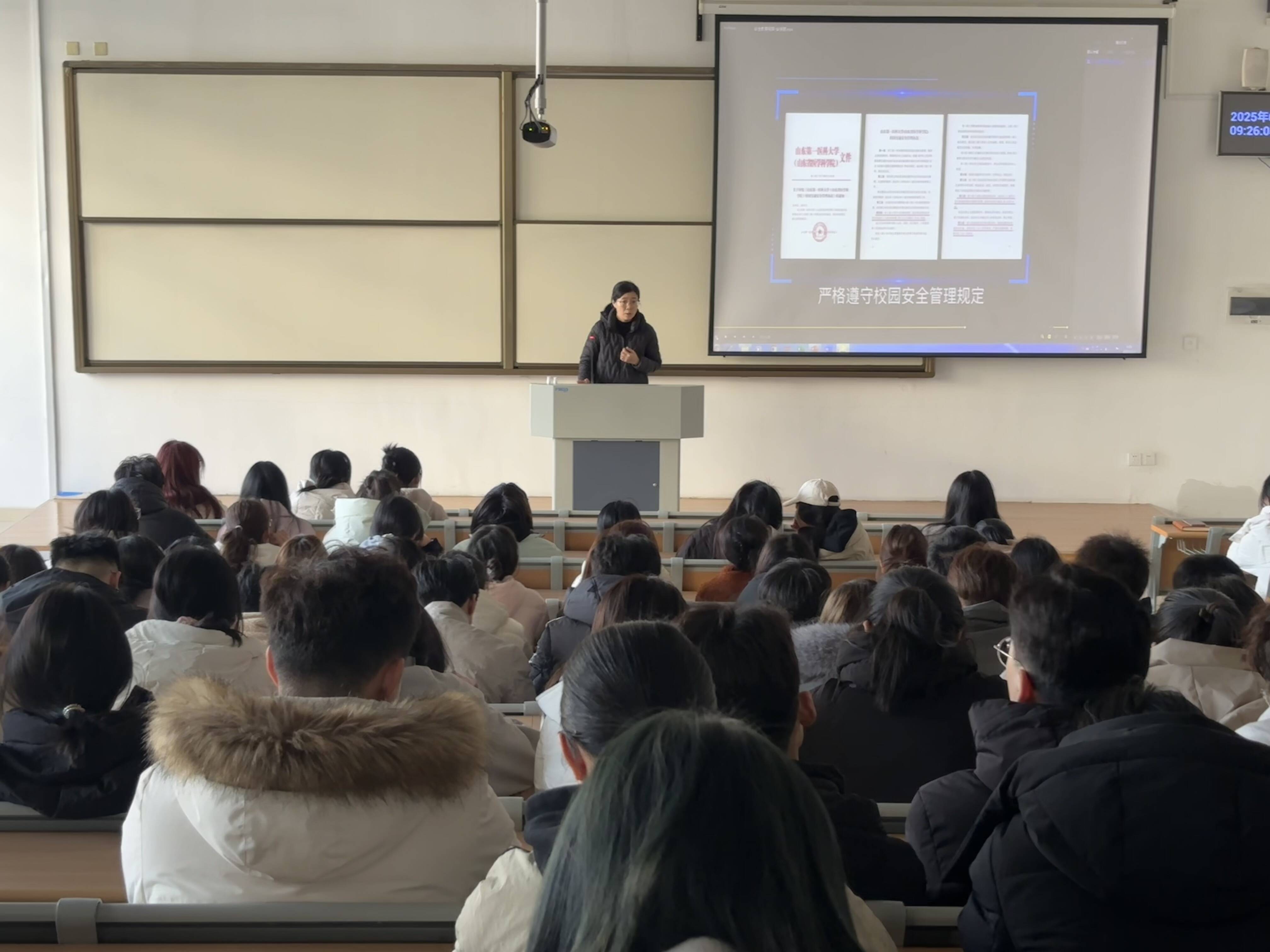 随后,杜江山就消防安全、网络安全及生命健康三大领域进行了系统讲解。在消防安全方面,他着重分析了违规使用大功率电器、消防通道堵塞等潜在的安全隐患;在网络安全领域,他深入解析了当前网络诈骗的主要手段,并着重强调了网络信息甄别的重要性以及个人隐私保护的措施;在生命健康环节,他聚焦于传染病的预防工作,并积极倡导通过科学锻炼的方式来增强个人免疫力。同学们纷纷表示,通过此次讲解,不仅增强了自身的安全意识,还学到了许多实用的防范技巧,受益匪浅。