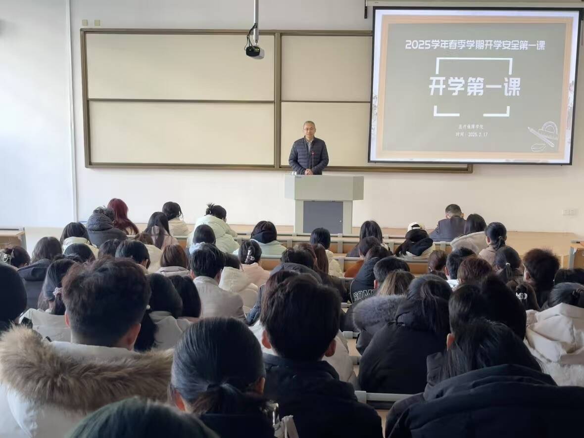 为切实提升学生安全意识,营造平安和谐的校园环境,v站体育官网于2月17日在A3-103教室召开2025学年春季学期“安全开学第一课”。学院院长谷景亮、党委书记杜江山、辅导员张琪以及全体同学参加此次活动,副书记兼副院长张秀梅主持活动。