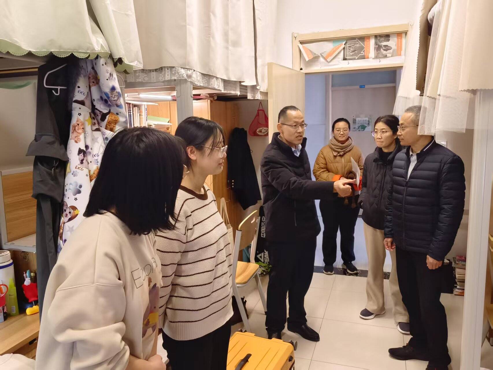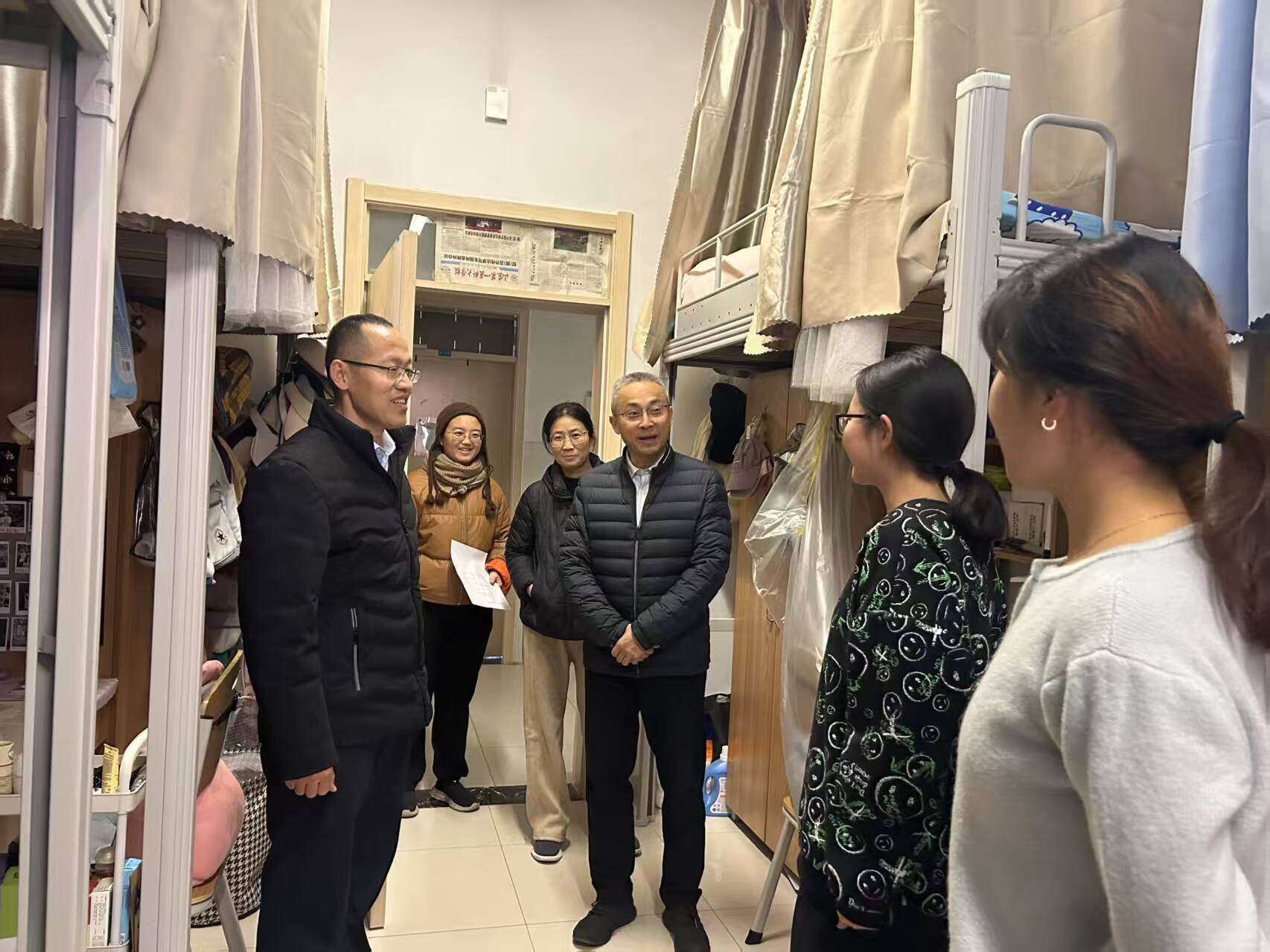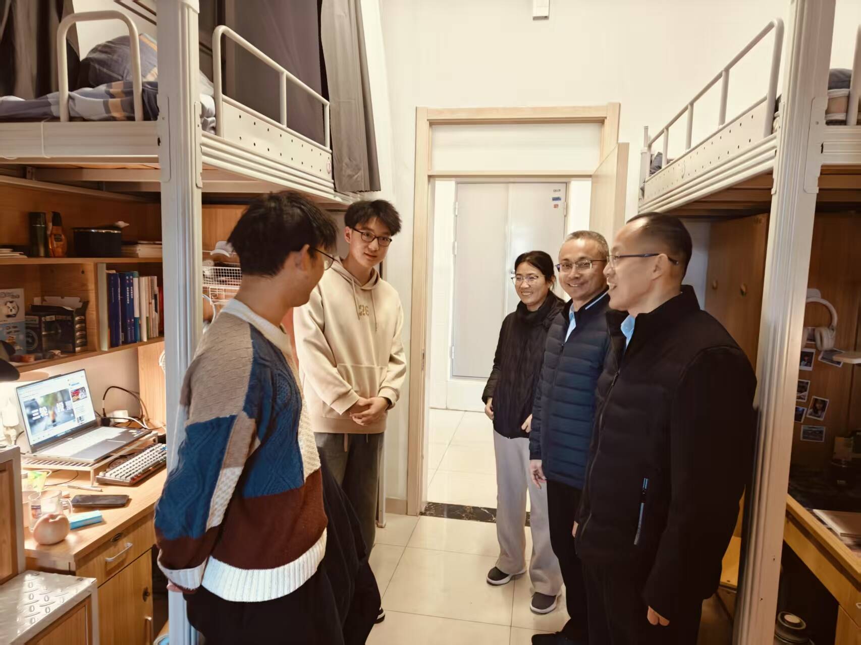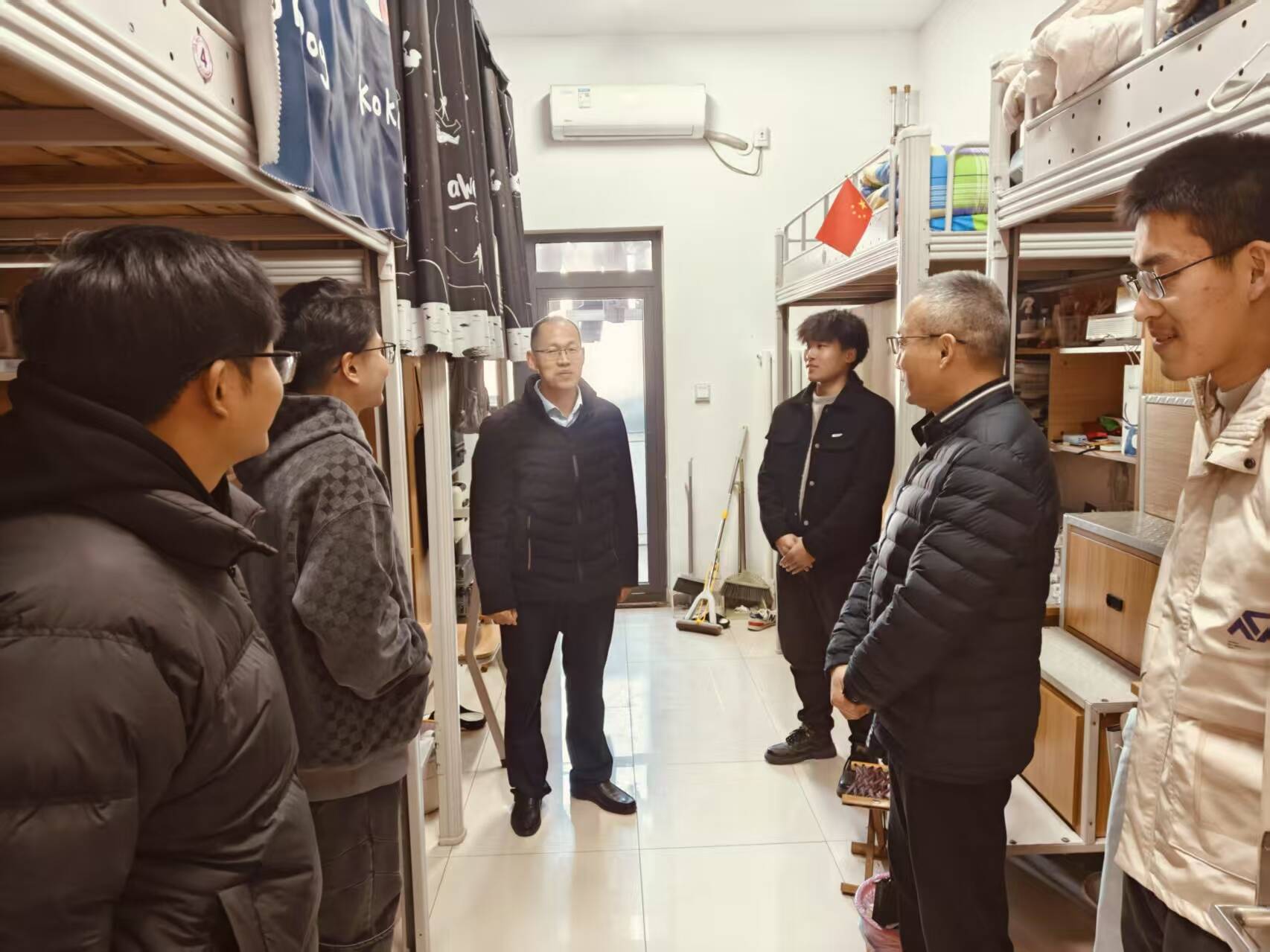 学院院长谷景亮、党委书记杜江山、副书记兼副院长张秀梅和辅导员张琪深入学生宿舍进行细致查看,了解学生的生活状况及需求。检查过程中,谷景亮亲切询问同学们的假期生活情况,关心同学们的身心健康,并鼓励大家以饱满的精神状态迎接新学期的学习任务。