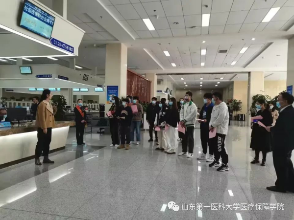 同学们在省医疗保险事业中心领导的带领下参观了服务大厅和省医疗保险事业中心文化墙,学习了解了我国医保发展历史、医保服务流程等。姜伟工程师为同学们讲解医保个人账户“一卡通行”工作。同学们了解到“一卡通行”工作的开展过程和当前省内医保卡支付的发展情况,也深刻感受到医保工作人员的艰苦努力和辛勤奉献。活动的最后,同学们与导师分别进行交流沟通。