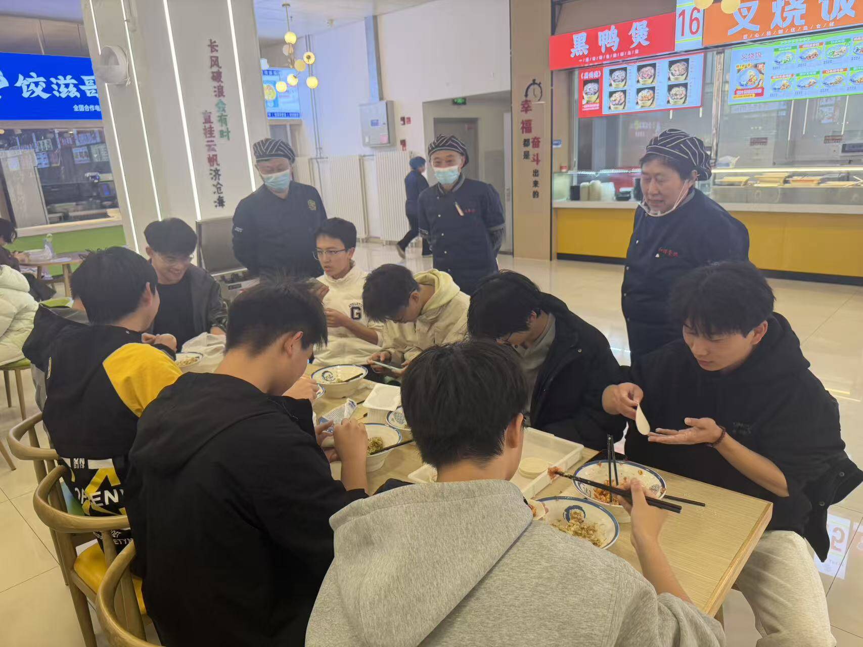饺子制作完成后,食堂统一进行烹煮。用餐时段,同学们共同品尝劳动成果,交流实践体会。本次活动通过集体劳动与共同用餐的形式,增强了学生的团队意识和协作能力,也让同学们在集体活动中感受到学院的关怀与温暖。