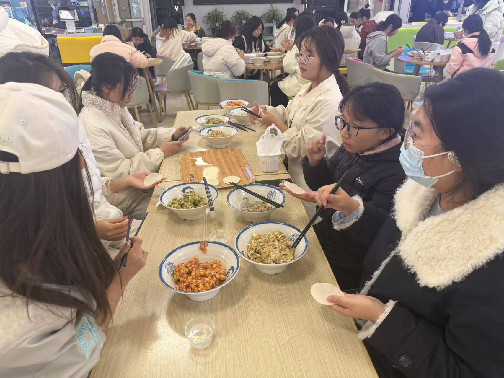 为弘扬中华传统文化,增强学生集体凝聚力,11月26日,v站体育官网在和谐餐厅组织开展了冬至包饺子主题文化活动。2025级全体学生参与本次活动。